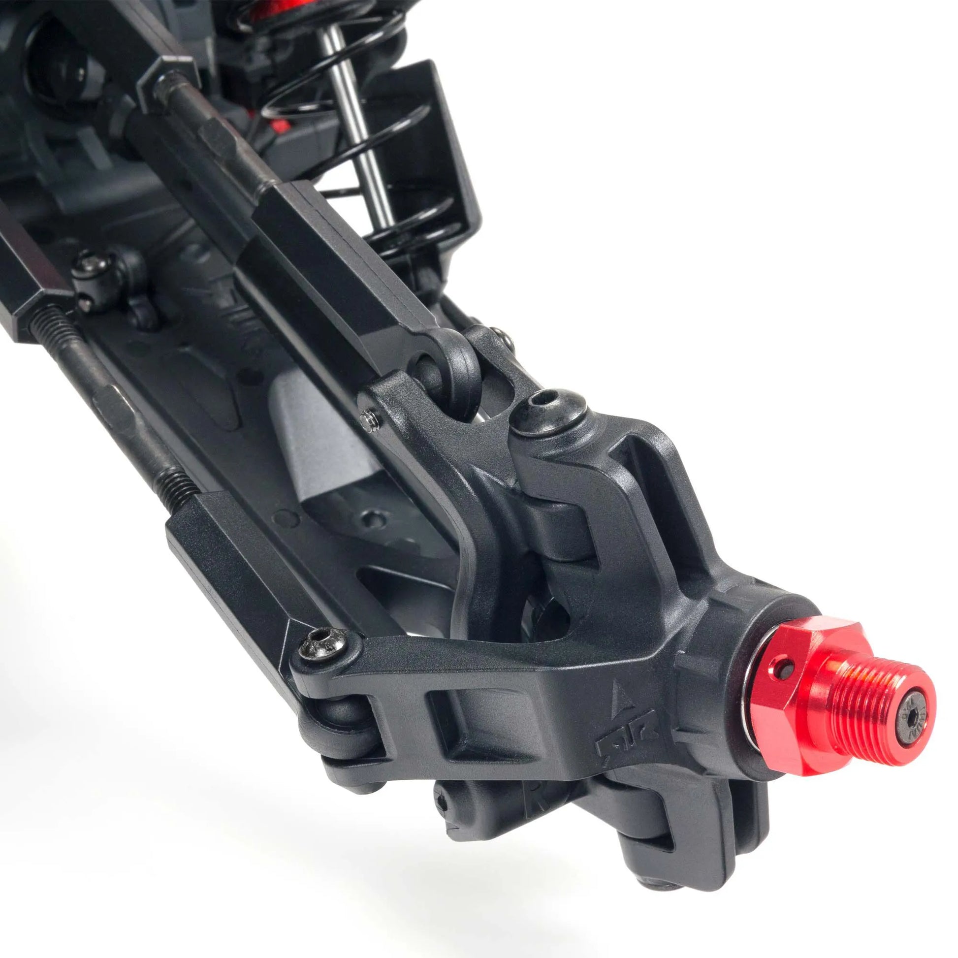 - Increased and lengthened suspension travel from longer shocks, wider suspension arms and higher shock towers