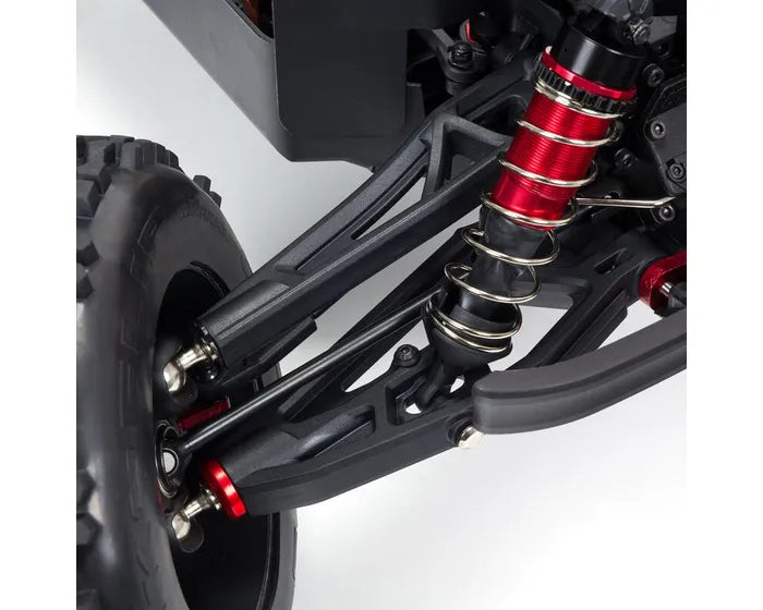 Beneath its 1950s “Real Steel” body, the 1/8 scale NOTORIOUS™ 6S BLX 4WD has an ARRMA® tough design that’s ideal for wheelie-popping, back-flipping stunts — now made even easier with a Spektrum™ SLT3™ radio, dual protocol receiver, Smart ESC and more.