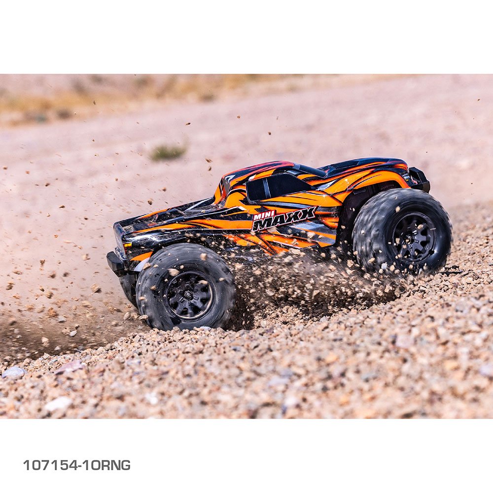 Overbuilt and over-the-top, the all-new Mini Maxx® captures the engineering, unmatched power, and extreme durability that defines Traxxas Maxx® performance. Mini Maxx is the perfect, take-anywhere size, delivering 30+ mph brushless speed and legendary Maxx toughness that slides easily into a backpack.